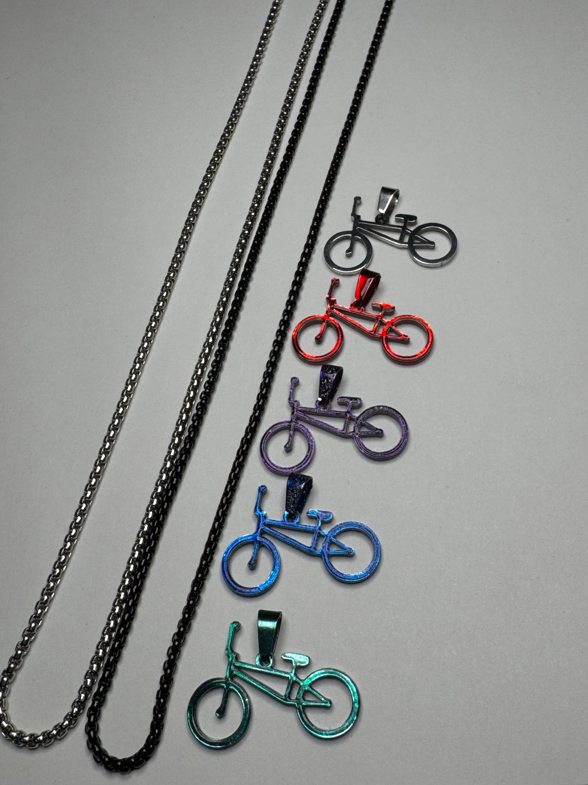 This BMX necklace is crafted from 316L stainless steel, making it tough, durable, and resistant to tarnish or rust.